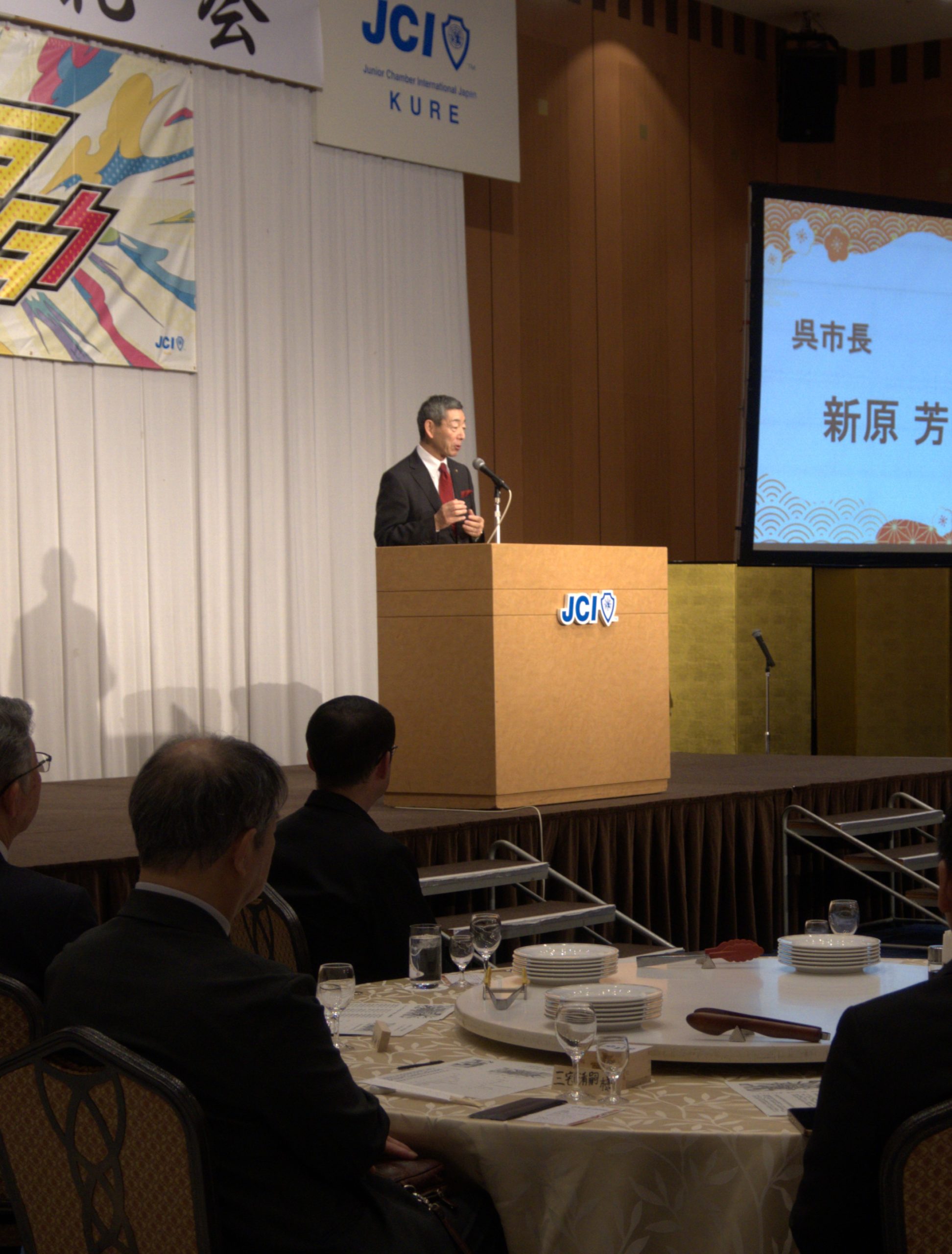 新原芳明様をはじめとする来賓の皆様、特別会員の先輩方、